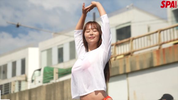 37歳“声優界No.1グラビアン”水も滴る橙ビキニの「お尻のラインが圧倒的!」